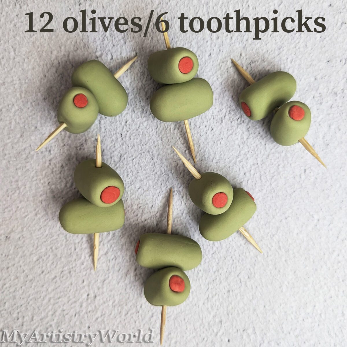 • Carefully shaped and painted to look like realistic green olives with red pimentos