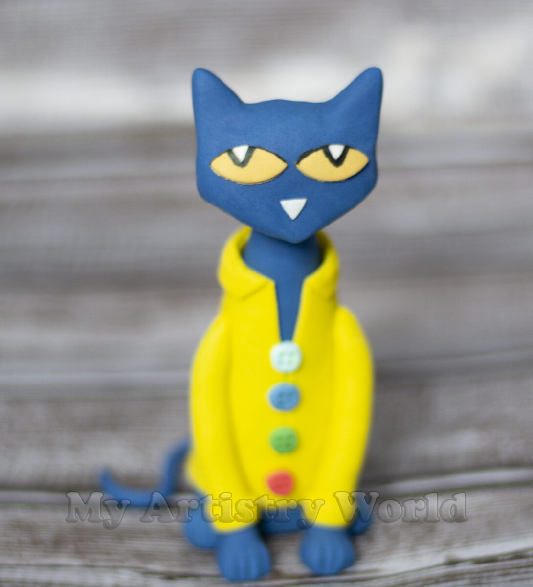 Edible 3D fondant/gum paste Pete the Cat cake topper.