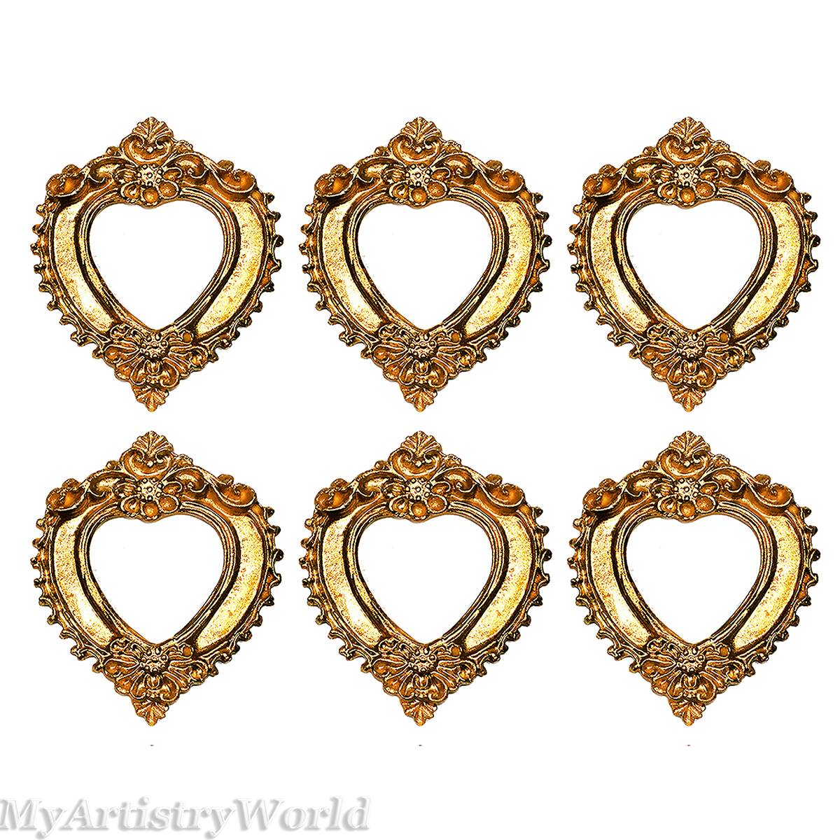 Set of 6 Vintage Gold Heart Frames – Ornate Mini Picture Holders