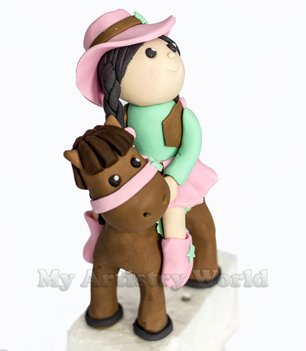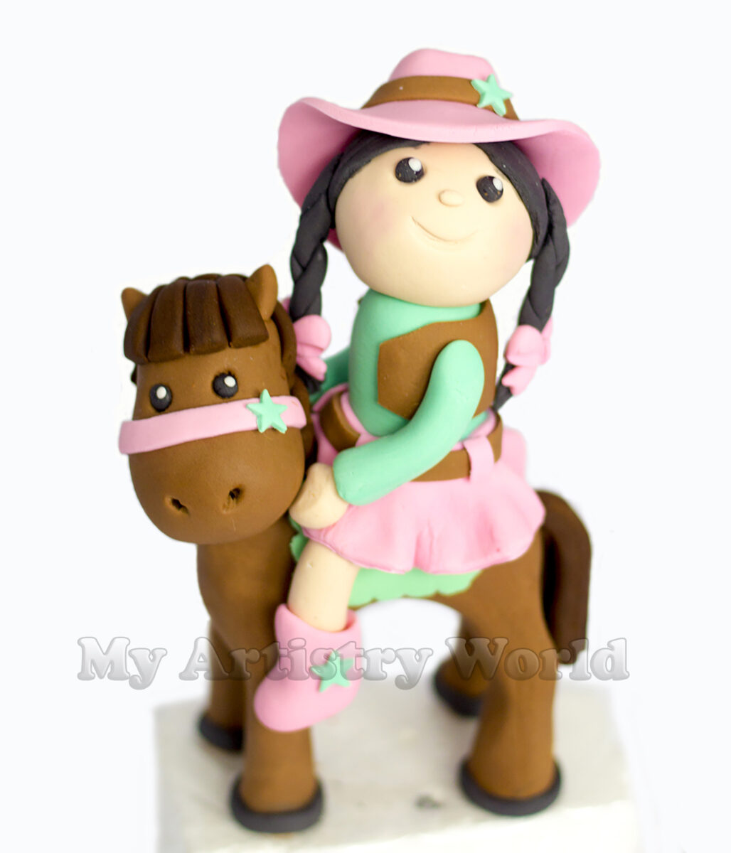 The listing above includes one cake topper of a girl and one of a horse, approximately 6″ in height together. We can customize it to your liking.